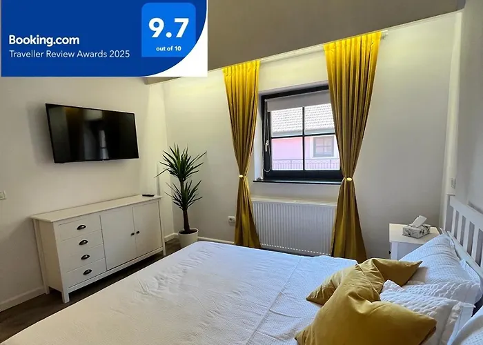 Profitez de la cuisine équipée fournie dans Appartement Iris Le Dôme et équipée d'une bouilloire électrique, d'un réfrigérateur et de la vaisselle pour votre confort. L'aéroport Timisoara Traian Vuia International est à une distance de 20 minutes en voiture, et l'arrêt de bus Piata Marasti est à proximité immédiate de ces propriétés Appartement Iris Le Dôme.